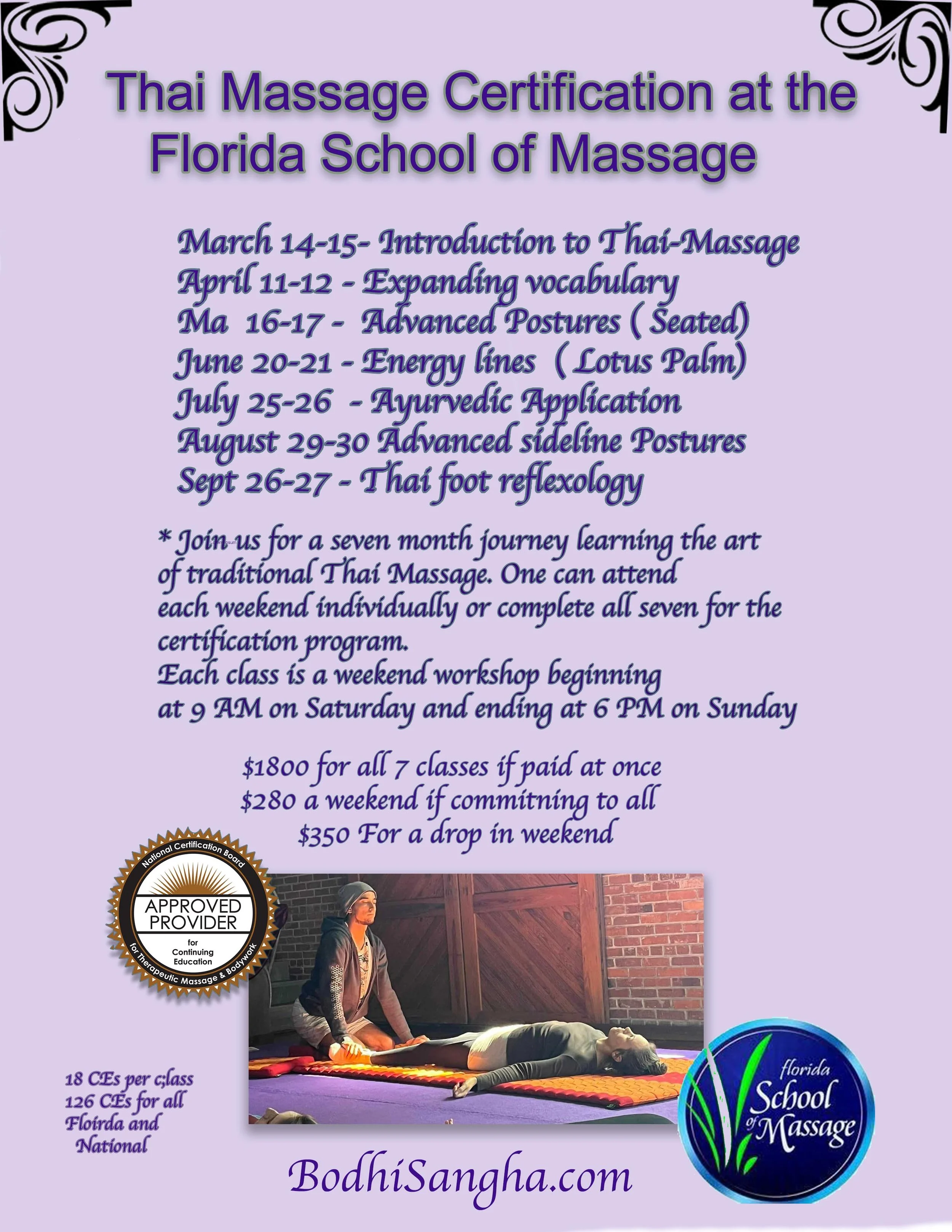 * Thai Massage Certification - ( Strictly Mat Work ) Location /Florida School of Massage (Gaineville Florida )